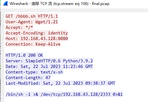 流量里边有bash bbbb.sh,能直接追踪到文件内容: