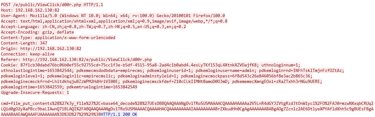 翻流量,明确先通过cmd进行RCE,过滤字符串cmd看到payload:
